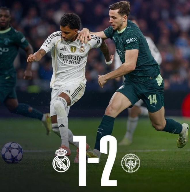 伯纳乌又迎来一场冷雨夜!北京时间12月11日凌晨,欧冠联赛阶段第6轮,残阵皇马主场迎接劲敌曼城的挑战。虽然银河战舰依靠着罗德里戈的闪击率先打破僵局,但是曼城凭借奥赖利补射扳平与哈兰德的点球,在半场结束时就将比分反超,最终蓝月亮军团在客场2比1逆转击败皇马。